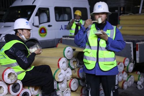 隔離點(diǎn)一線工作人員現(xiàn)場(chǎng)就地用餐